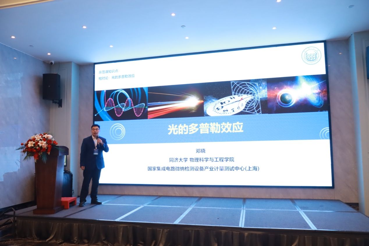 青年教师邓晓脱颖而出。在比赛中,他凭借扎实的专业知识、精心的教学设计、出色的课堂组织能力以及独特的教学方法,结合先导产业前沿科技应用,充分展现了良好的教学功底和教学风采,赢得了现场评委和观摩教师的一致好评,最终荣获特等奖的优异成绩。颁奖后,邓老师为大会做了精彩的大学物理课程示范课展示。