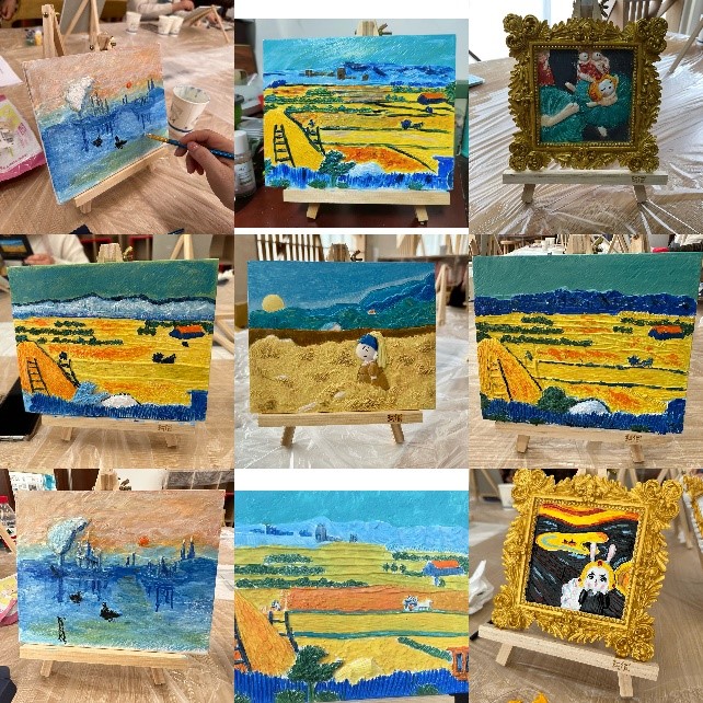 组织全院女教职工开展立体浮雕手绘油画活动。活动以手绘油画的形式,涂鸦梵高的向日葵、星空,莫奈的日出、丰收等经典名画。本次活动让女老师们在工作之余愉悦精神、放松心情,增强了学院女教职工们的交流和凝聚力,丰富了女教职工们的工作和文化生活。