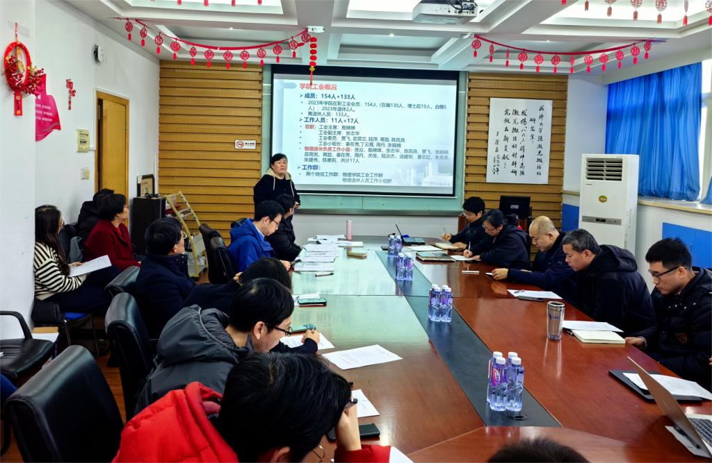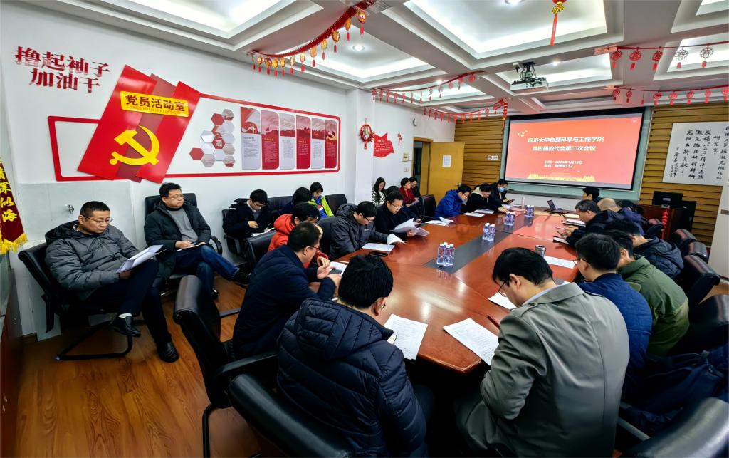2024年1月19日下午,学院第四届教代会第二次会议在物理馆512会议室举行。学院党政领导、校院教代会代表、列席代表共计30人参加会议。会议由学院党委副书记、工会主席殷娣娣主持。