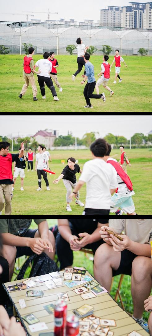 放下背包,动起来吧!教练带大家先做了热身活动,然后随机分组获得“八彩”小队🌈飞盘比赛开始🥏抛接之间笑声不断。