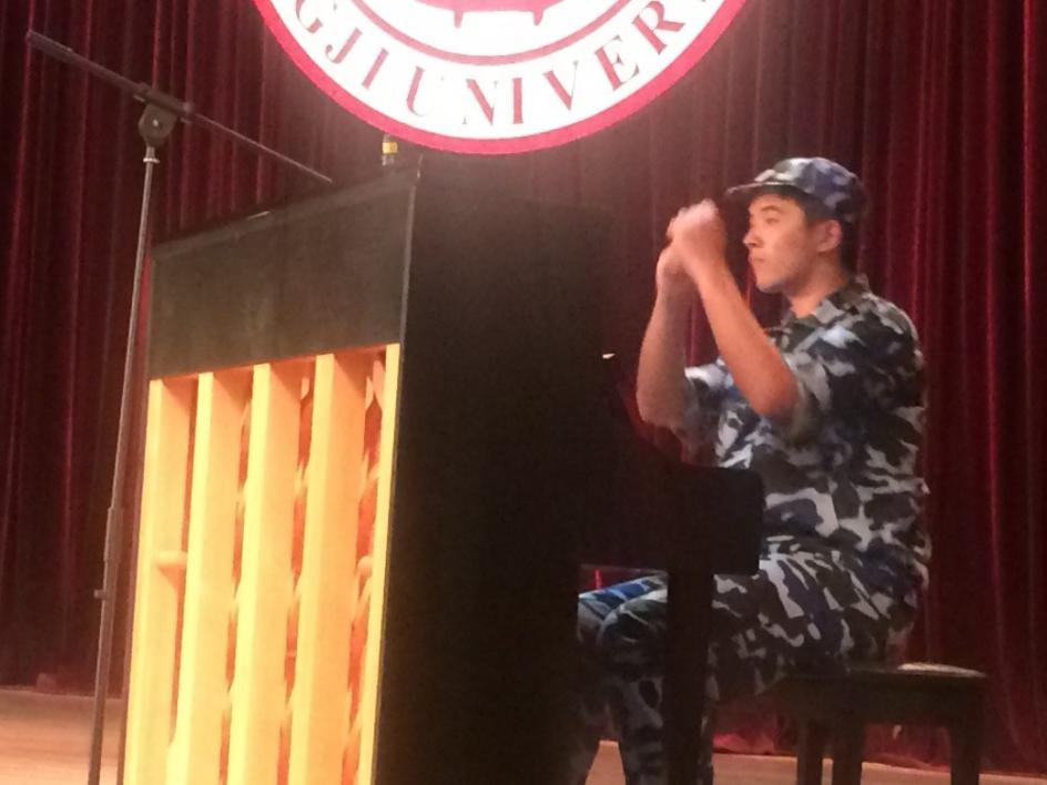(二)永不磨灭的番号“你若军训,便是晴天”——一个阳光明媚的清晨,一群阳光欢乐的孩子,开始了一场漫漫又短暂的十天军训征程。军训日常等等按下不表,来说一说不是每一次军训都能碰到的三个教官“围殴”一个连队的故事。一个对待我们松到腼腆的大哥哥,一个对待我们凶到秀高考的连长,还有一个没摸清楚脾气就被拉去教育艺术人的教官——感谢艺术与传媒学院的女生送我们的“福利”——无数次曾想象做错动作被教官踹的场景,结果碰到的是在我们做错动作时也会无奈的发笑的哥哥。教我们学一首军歌《过得硬的连队》——“郭德纲的连队”——都教了两遍;喊口号太大声会破音;营长指示时站在原地,还原地跑七步,然后自己说“好尴尬呀”。我们的军训就在这样的环境下开始了,期待可以一天比一天好。——欧阳中岩