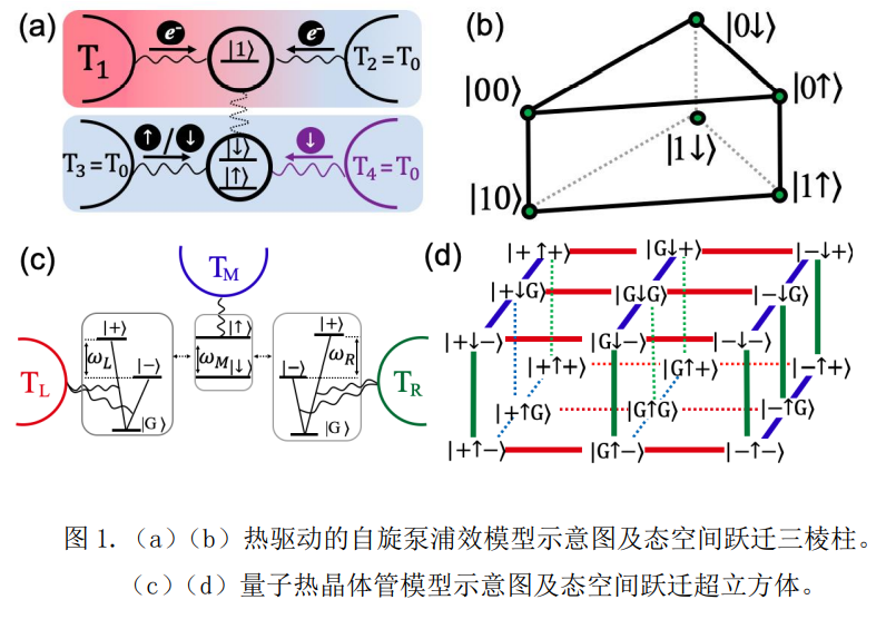 量子器件的设计与优化是基础凝聚态物理与统计物理的重要研究方向。在非平衡条件驱动下,量子系统中会产生各种物质和能量的定向移动,从而产生电流、热流、自旋流等现象。然而对于一个开放耗散的小量子系统的热流分析是十分复杂的,需要同时考虑到电子、声子因素,甚至在一些系统中还存在自旋-声子-电子-热耦合的复杂效应。一个量子系统通常有许多个量子态,且各量子态之间可以发生跃迁。若将量子态视为网络结点,将可相互跃迁的量子态之间相连形成一条双向边,就可以将该量子系统映射到态空间表示的复杂网络。对于非平衡态输运的网络分析,科学家们提出了将其分解为圈图去分析的新思路。当系统达到稳态时,这意味着此量子系统的状态在态空间经历的轨迹一定是闭合的圈,并且是由多个圈图协同作用的。对于类似的经典系统中,每个圈图对于输运的贡献,可以从图论角度提出的圈流概念可以进行精确地量化。然而,在量子热输运和量子热器件设计领域,尚缺乏一个方法定量分析大量的量子状态循环(即圈图)对于输运的重要程度,难以抓住复杂系统里的主要矛盾和主要机制。