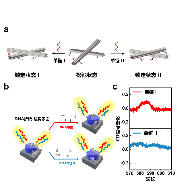图1. 基于DNA折纸-超构表面增强圆二色谱的非手性传感探测平台
