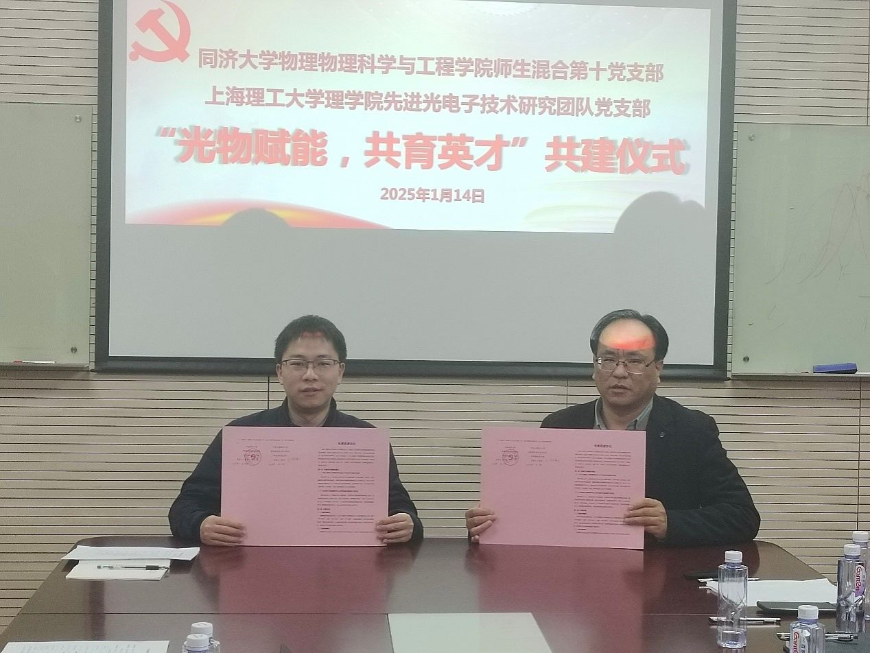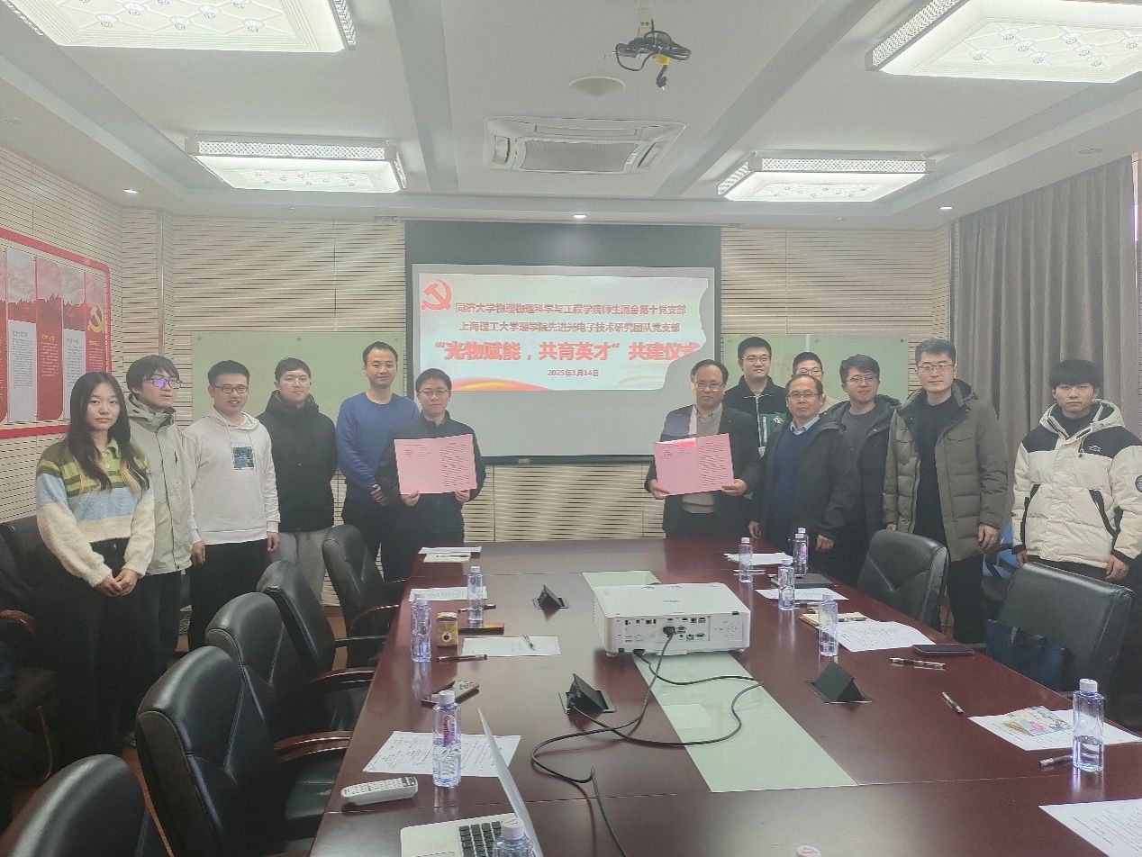 师生混合第十党支部于2025年1月14日下午,开展以“光物赋能,共育英才”为主题的党支部交流活动,双方对党建工作进行交流并签署共建协议。