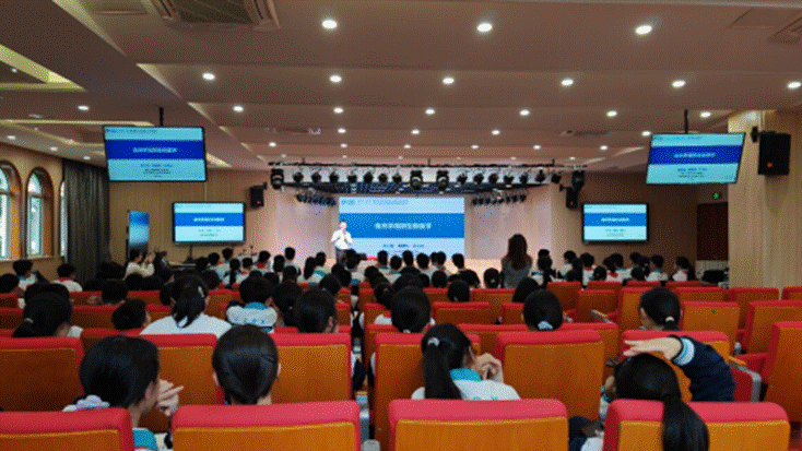 微纳光学与光镊技术在疾病检测与药物研发中的应用前沿。通过丰富有趣的实验视频,他向初二学生展示了如何利用光学手段精准操控微小生物粒子,同学们反响热烈。
